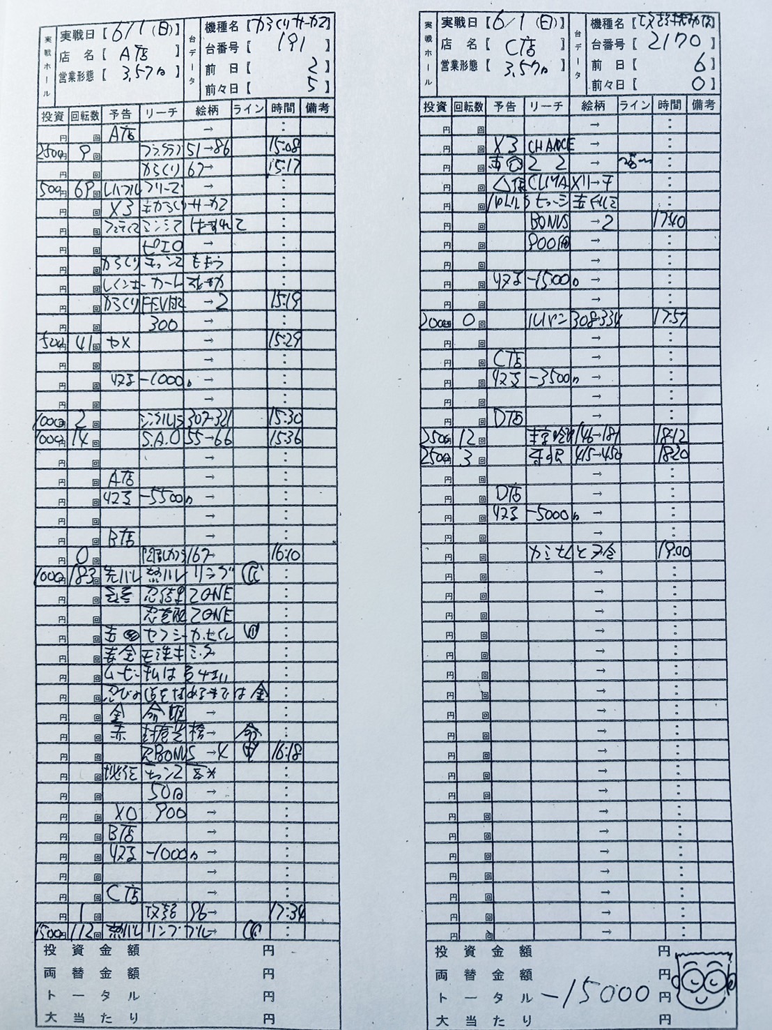 オール3000の東京喰種のおかげで5月27日には一撃12連チャン、3万発出したばかりです。