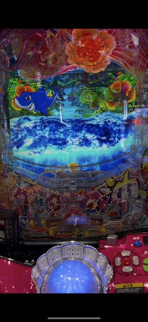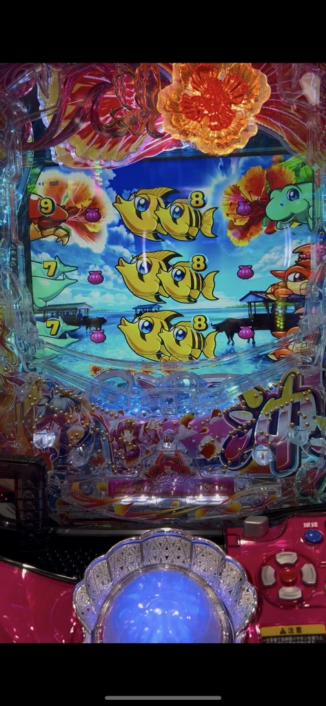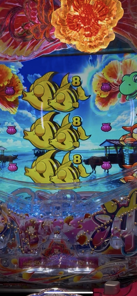 ヤバいくらい地味なギミックです。8のイシダイかエンゼルフィッシュが当ってくれたのはハイビスカスの絵が光ったからです。メリハリがありません。“こんなモノ?”