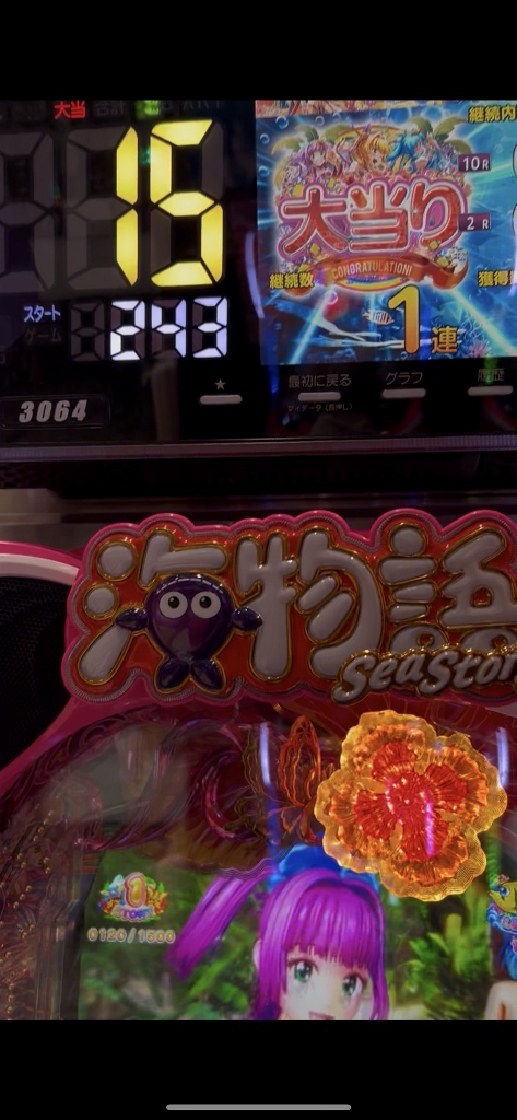 14回大当りして183回転のカド台が空いていました。人物もお魚も違和感だらけで馴染めません。シーサーも、ちょっとリーチはかわいくないです。