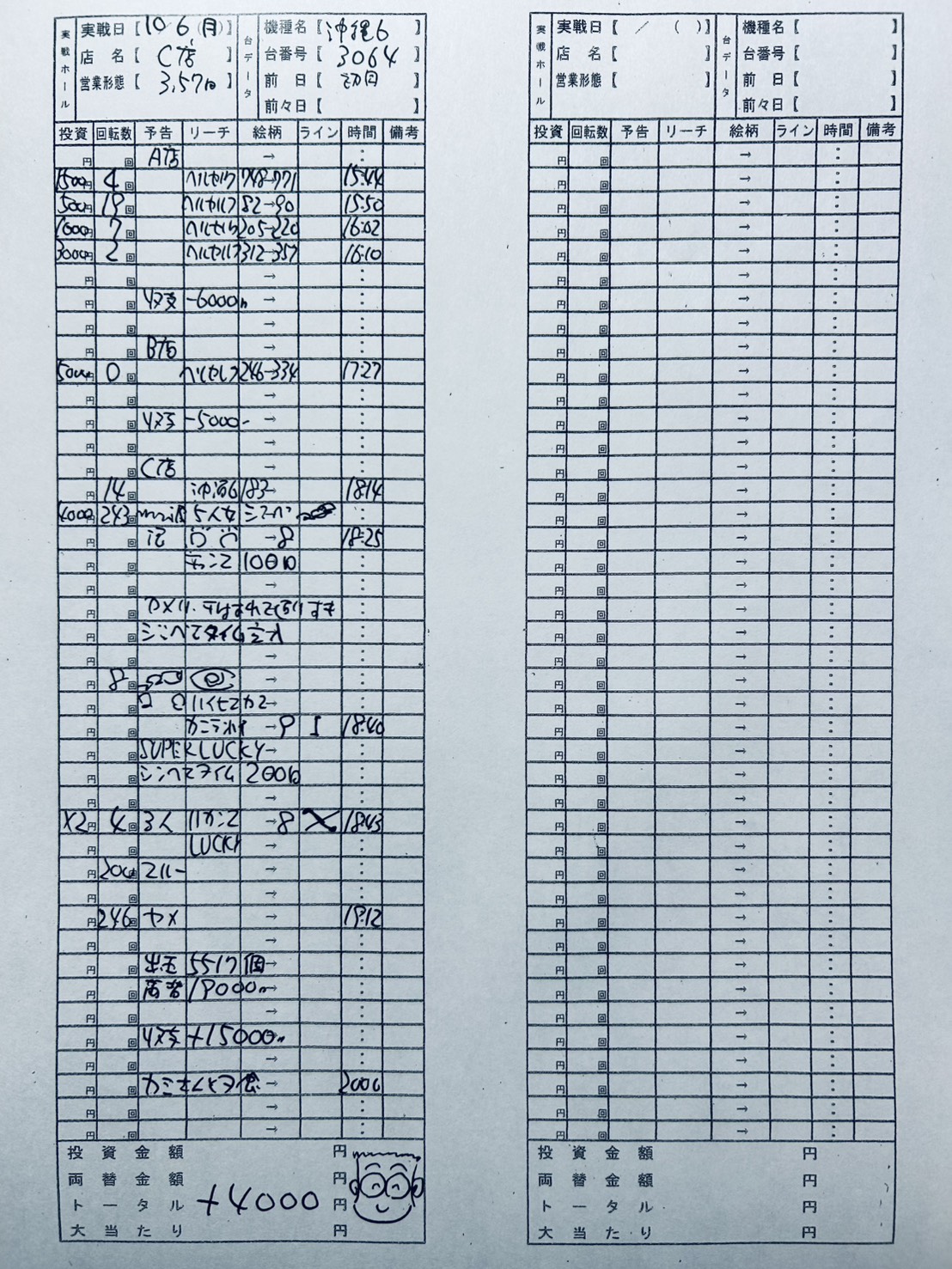 新装初日、4~6台しか買っていないホールはホッとしていることでしょう。沖海6を20~30台のワンコーナーは最高2万発のまま、ツラそうな海の常連さんたちの顔・顔・顔です。