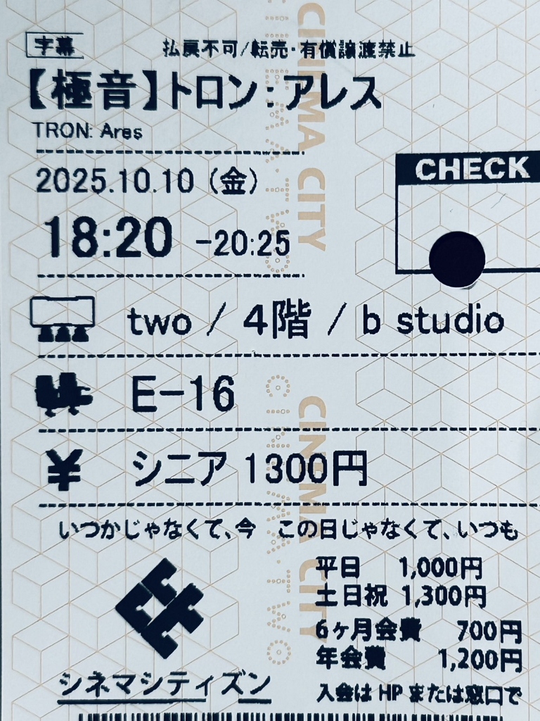 今日ロードショー公開中の“トロン アレス”を早速観に行ってきました。
