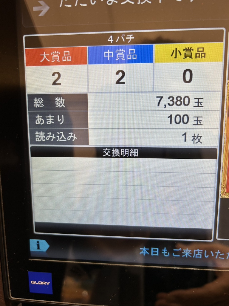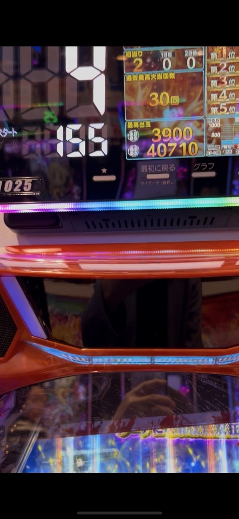 今日は4回出て155回転の台、2連&2連ってことは3000発&3000発の4回だけでトップ台です。