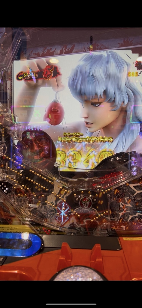 ベルセルクは6図柄で当って、美しいグリフィスの顔を見て7図柄に昇格してラッキートリガーに入ります。