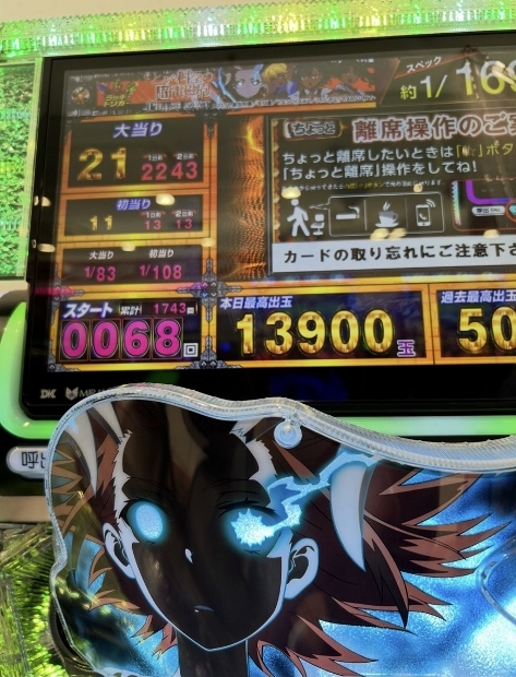 68回転でヤメて次のホールへ移動です。こんな感じでチョコチョコ負けそうです。