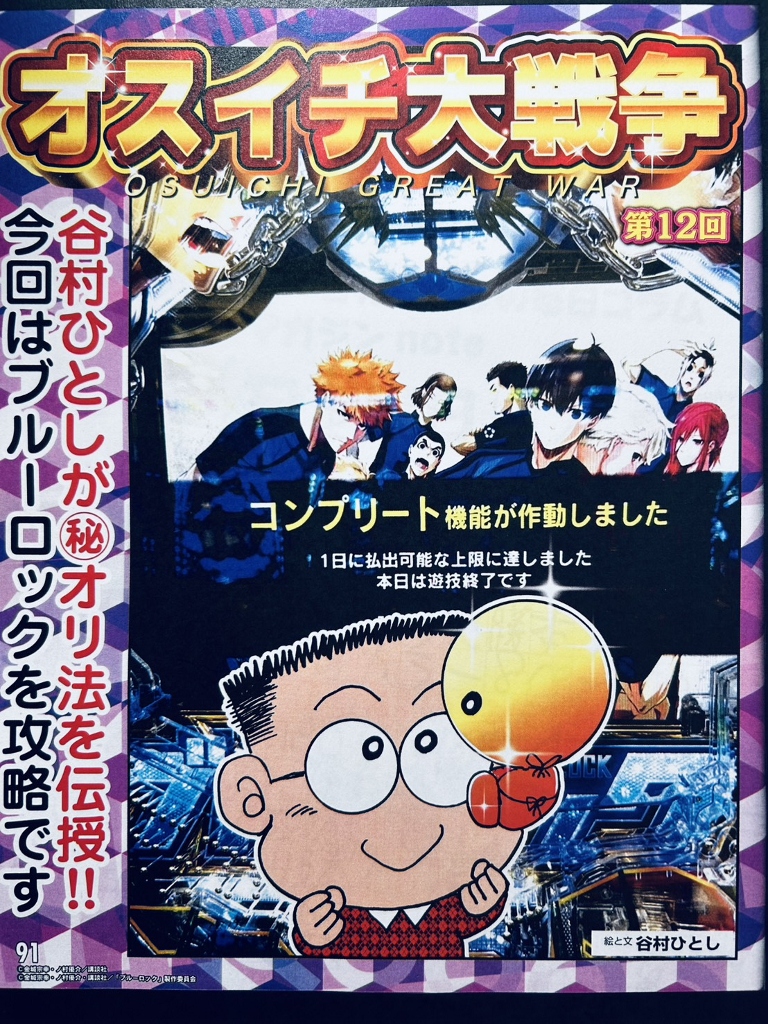 来月発売のパチンコ必勝本プラスオリ法のオスイチ大戦争のカラー8ページのマンガを描いています。