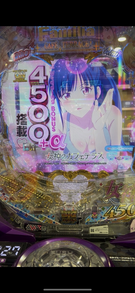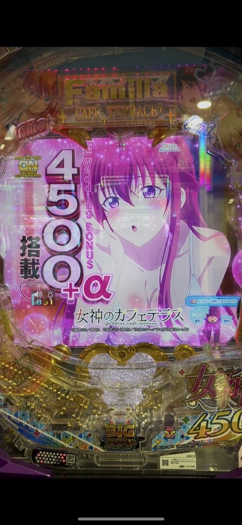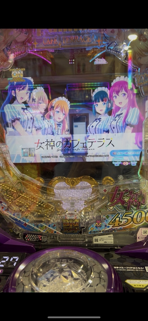 女神のカフェテラスは、女のコの声がやたらと流れて、70歳の老人は超のつくほど気恥ずかしく、とあるの新台もカワイイ声が流れます。