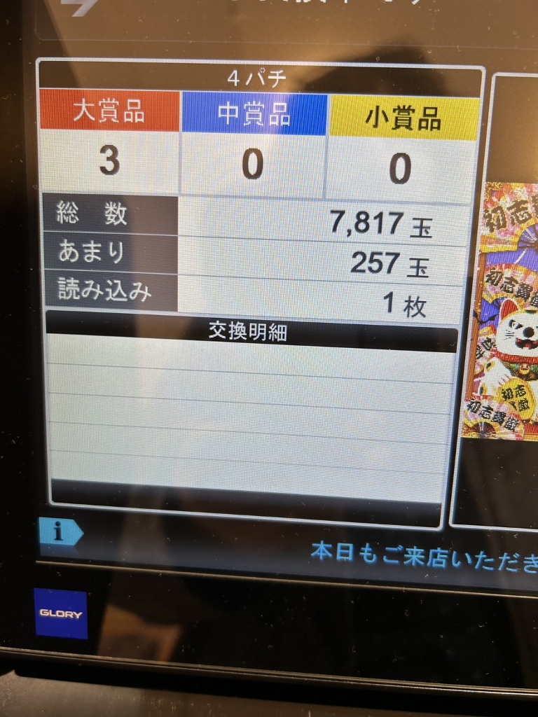 オスイチ単発で粘ってもまた単発、また単発のくり返しにウンザリする台もあれば、この台みたいに朝イチ184回転で1万6千発吐き出しちゃう台もあるのがパチンコです。
