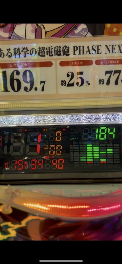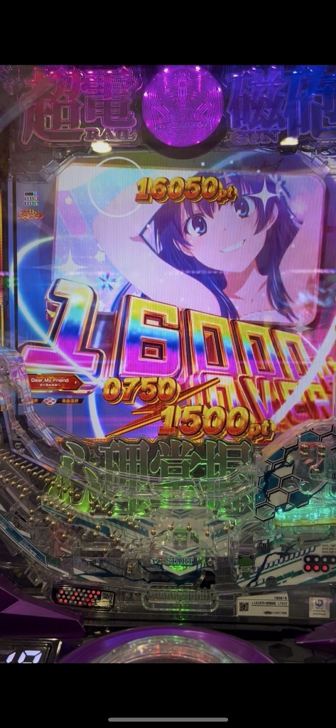 押忍!番長の170分の1でヒットしているスペックで、とある科学の超電磁砲PHASE NEXTを出しまくって、平日でもスロットファンの若者が40台にビッシリ座っているホールと、5台しか入っていないけれど若者で埋まっているホールのどちらでもポロリ2、3回転で先ローリングがピキュルルルンと派手に回って、可愛い女のコの声がして先バレプレミア、先ローリングの“祝福”をカスタマイズしているので、RUSH突入チャレンジを一撃成功してRUSH直行、7500発と1万6千発です。