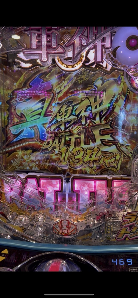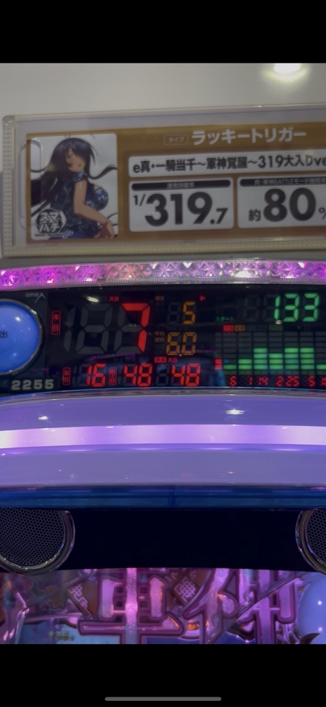 さて本日の軍神は単発&6連で7回大当りして133回転の台です。