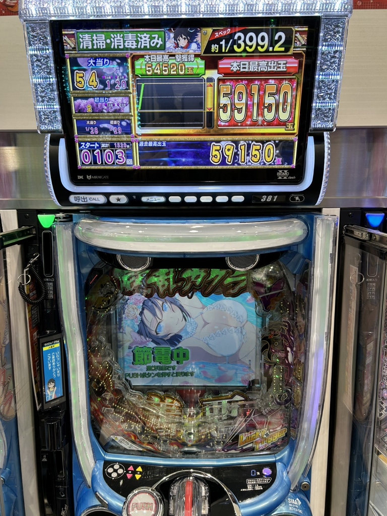 実は最初に入ったホールのトップ台が東京喰種や牙狼12を差し置いて閃乱カグラが6万発出ていてビックリしたからです。