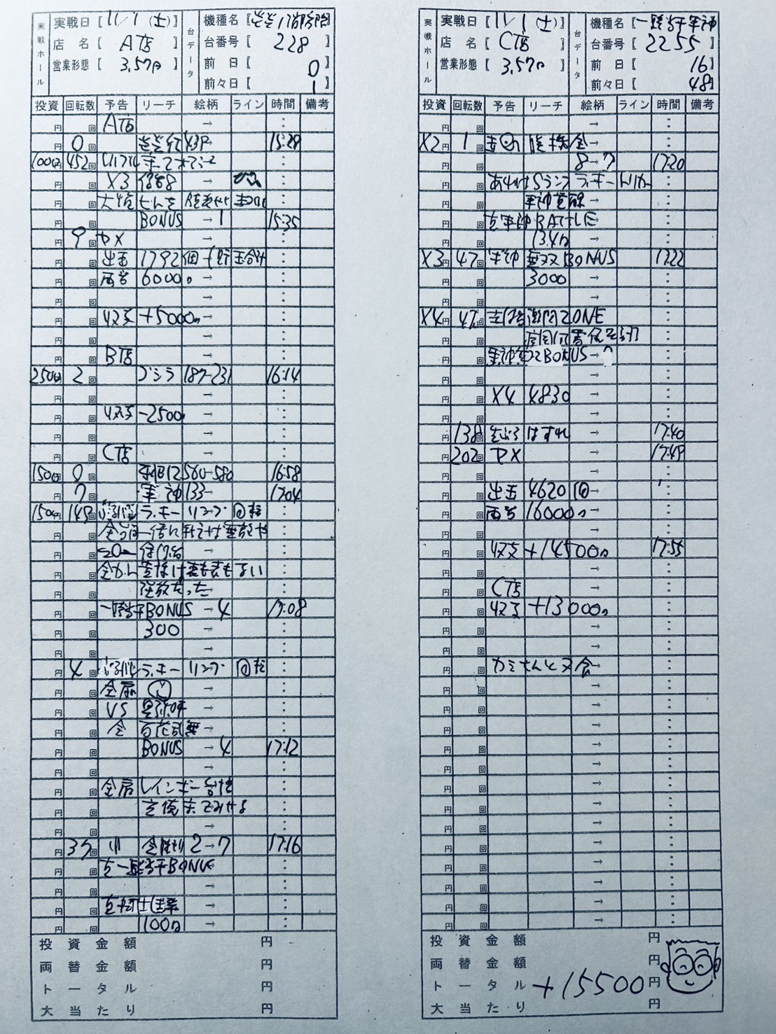11月1日の初勝ちがDAIICHIの真・一騎当千~軍神覚醒~319大入りver.でオスイチ先バレのぷるバレや、ラッキーリングのバイブにくるくる回る演出で、単発&単発&RUSHと、とても319分の1とは思えないひとケタ回転数での引き戻しの連チャンで4千発いただきました。