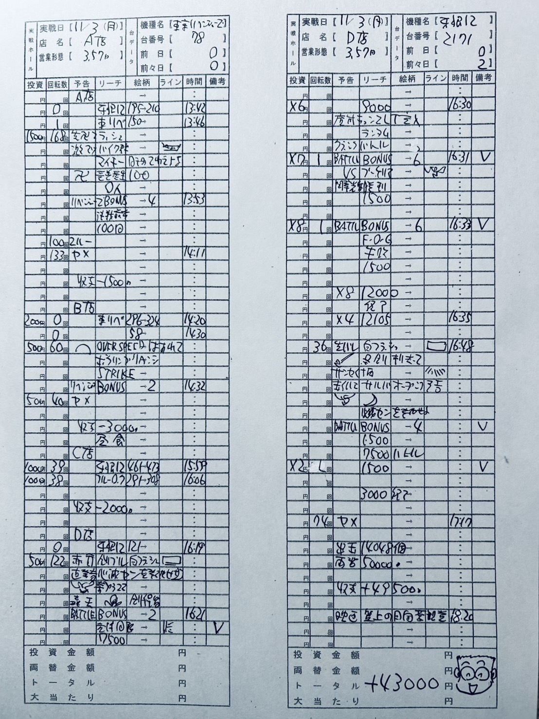 11月4日の大型新装前の3連休はホールも新台入替費用のカキ入れ時で、しっかり回収モードと予想がつきます。