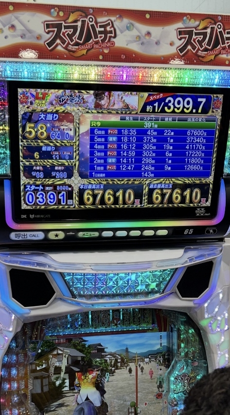 新台入替2日目の水曜日、やっぱり出てます!出玉で一番は期待の花の慶次黄金の一撃で、トップ台は6万7千発レベルです。