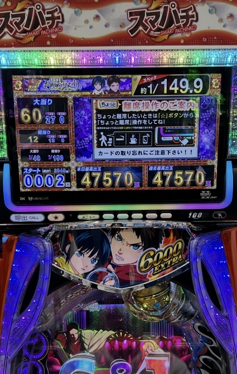 SANKYOの新台、もののがたりで6000発連発の2万4千発の爆発を味わいました。