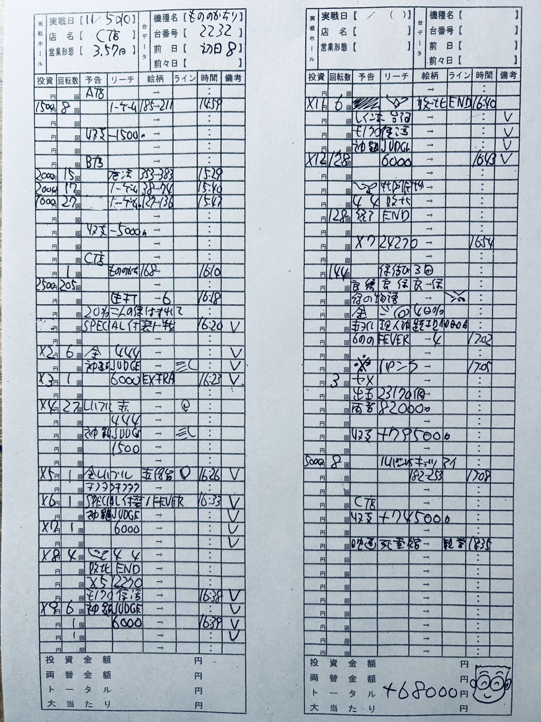 コンプリートに一番近いもののがたりで気持ち良く2万3千発出したあと、すぐ当ってこりゃヘタしたらコンプリートへ一直線だと思ったら、右打ちが遅れて衝撃のパンクで1発も取れずに終了です。