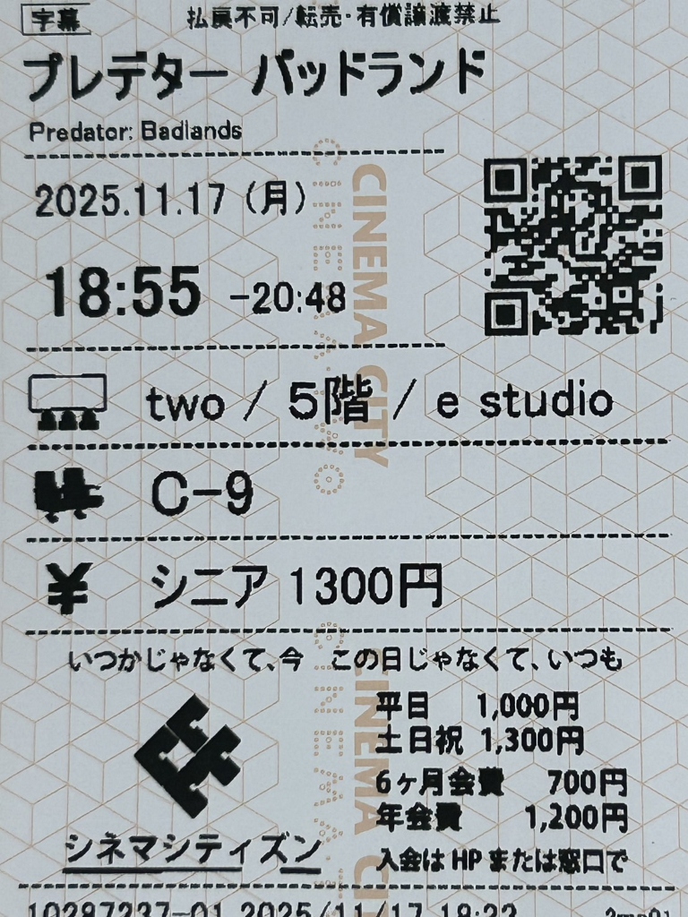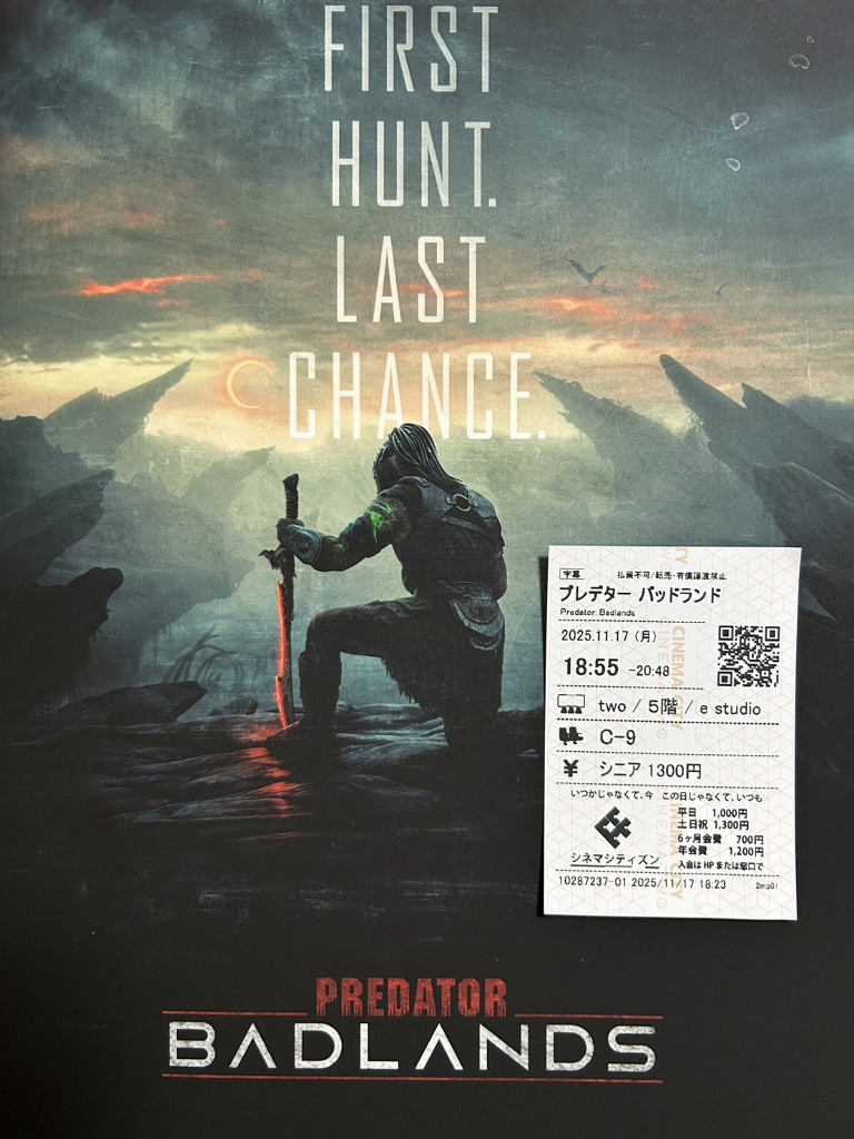 昨日大勝ちしたので今日はロードショー中のプレデターの新作、“プレデター:バッドランド”を観てきました。
