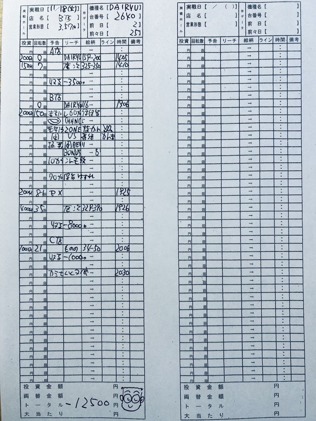 いつも2~3台空いてて誰も座っていないのに、新装のうちに3~4万発、過去最高出玉を記録したっきりサッパリの大龍です。