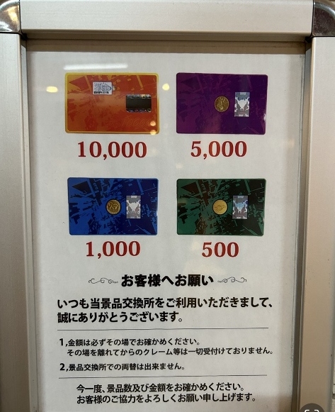 エリアごとに換金率が違ったり、景品の種類も様々です。