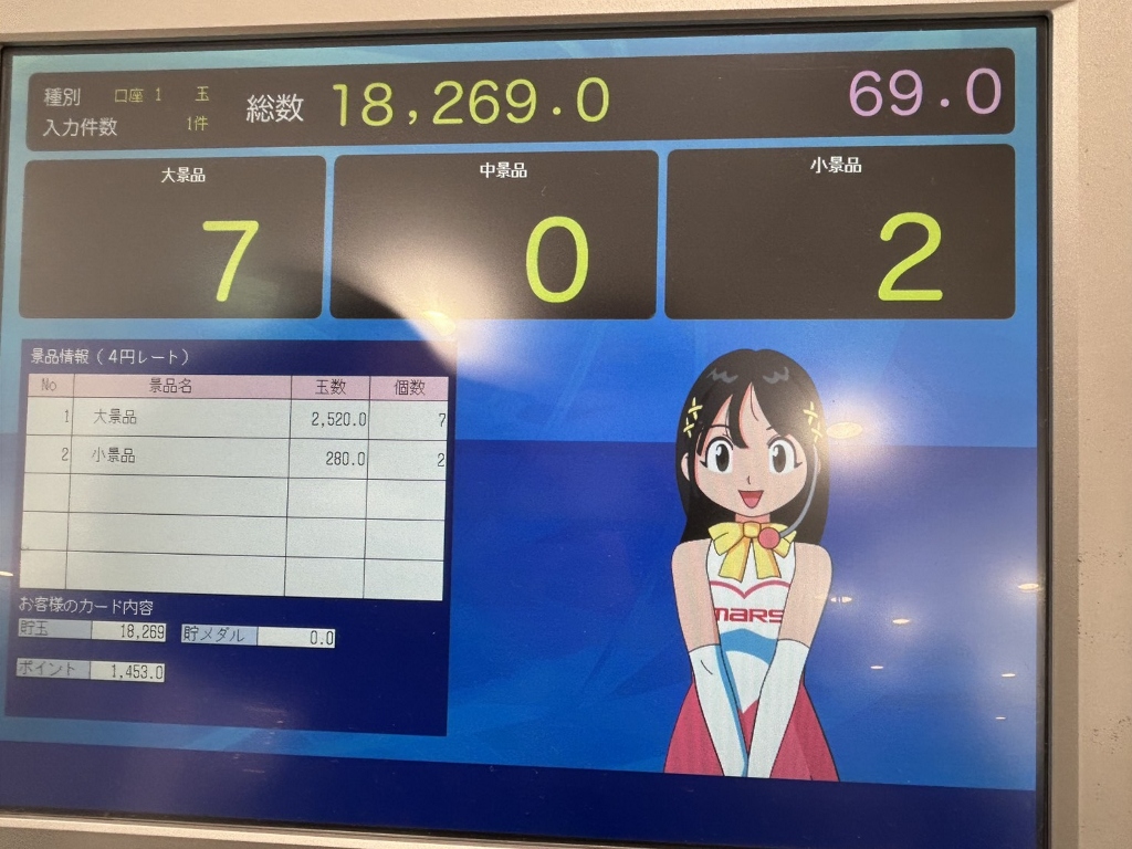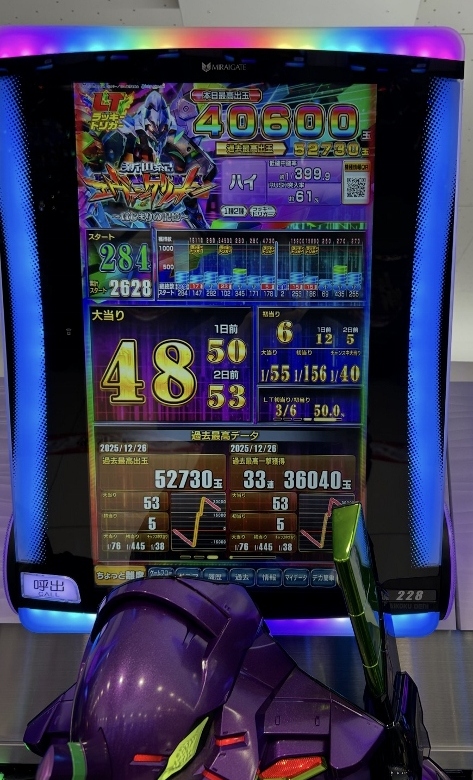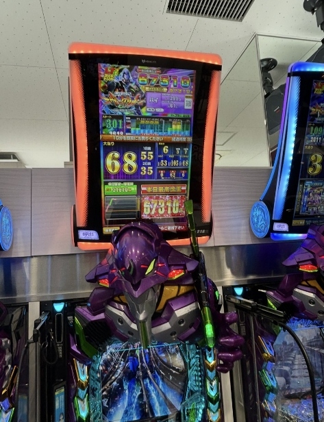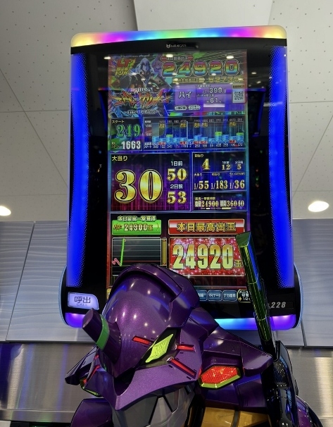 満席かと思ったエヴァに1台、30回大当りして2万4920発出た台が249回転でヤメられました。