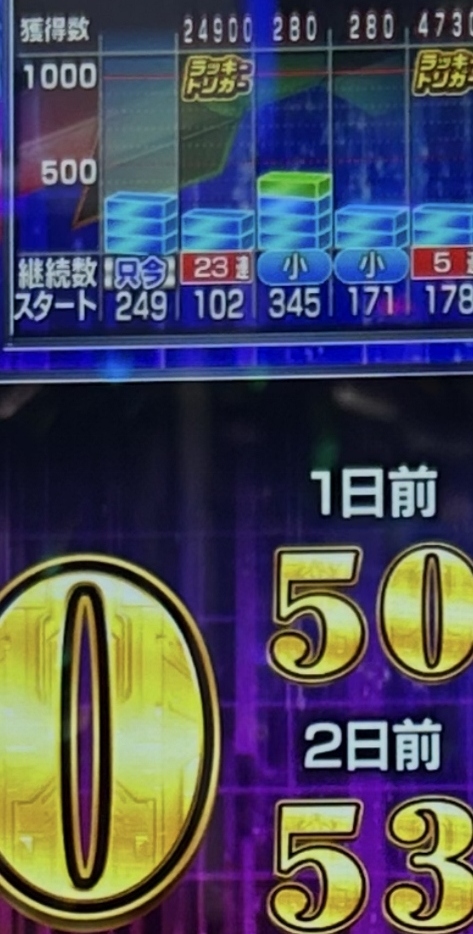 Bistyの大当りしやすいと感じる40の倍数付近でヤメて、オマケも数珠つなぎもなくてヤメています。