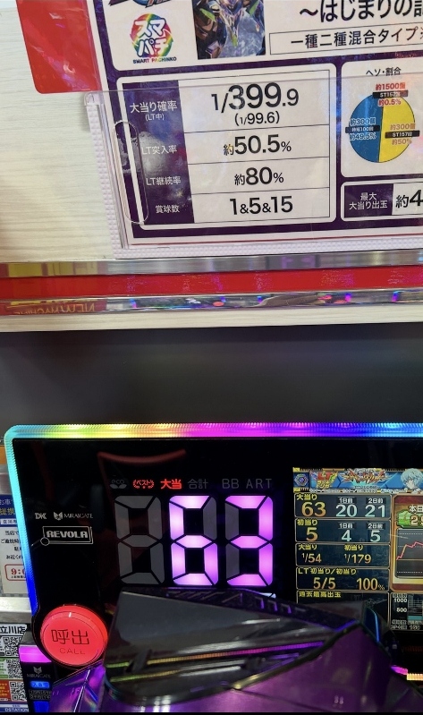 もちろんひとケタのハマリ台もあります。一気に夜だけ20連チャンするラッキートリガーの夢あるパターンもあれば、ボクの隣の台は33回も出てるのに1400回ハマって台を叩いてヤメたあとの人がオスイチ単発で、時短中Bistyデモ出しをしたのに引き戻さなくてガッカリしてヤメたあとの人がオスイチ大連チャンです。
