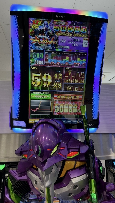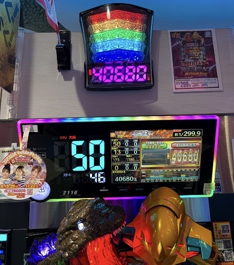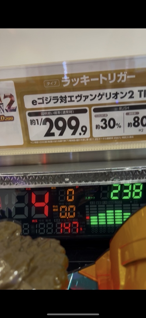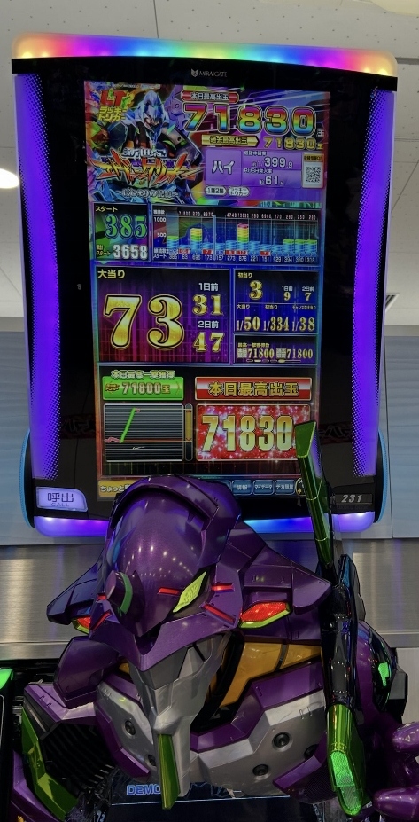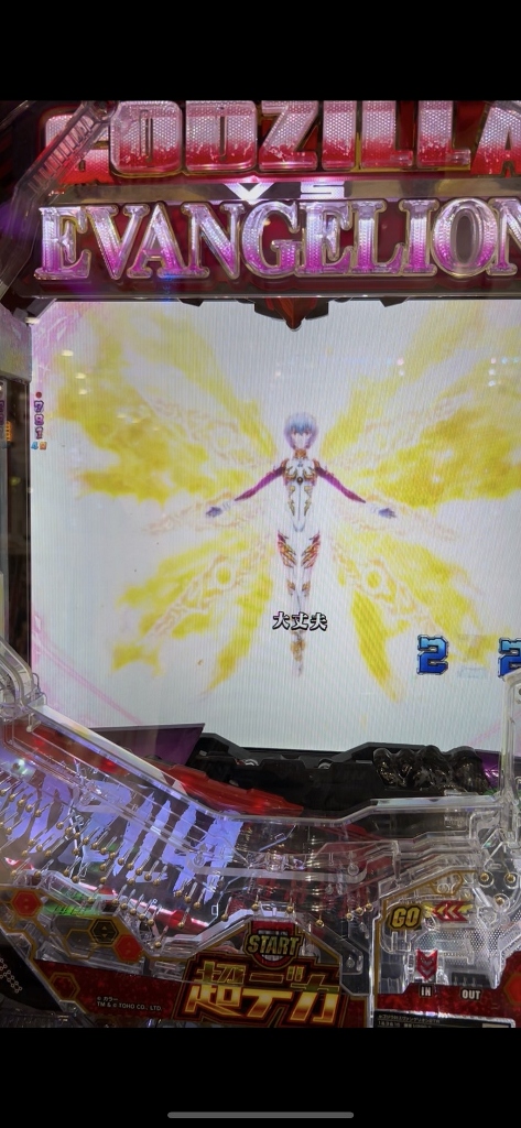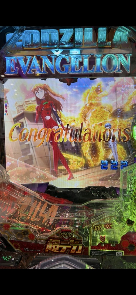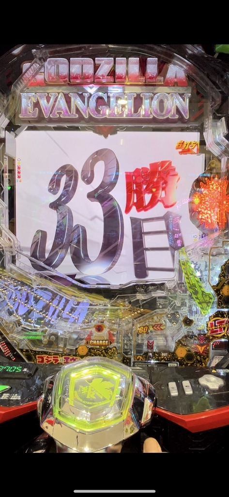 あれからちょうど1年、今日は299分の1、超デカヘソになったゴジラ対エヴァンゲリオン2超デカに座りました。4台しか入っていないのですがよく空きます。エヴァや東京喰種に流れちゃってます。