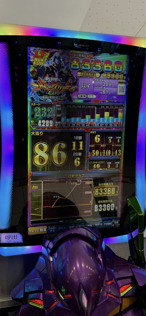 “ねえセンセイ、この台初めてなんだけど大丈夫?”と恐る恐る打ってた未来への咆哮の常連さんも、大当り50回以上でニコニコです。今日も8万発の別積みが出ています。