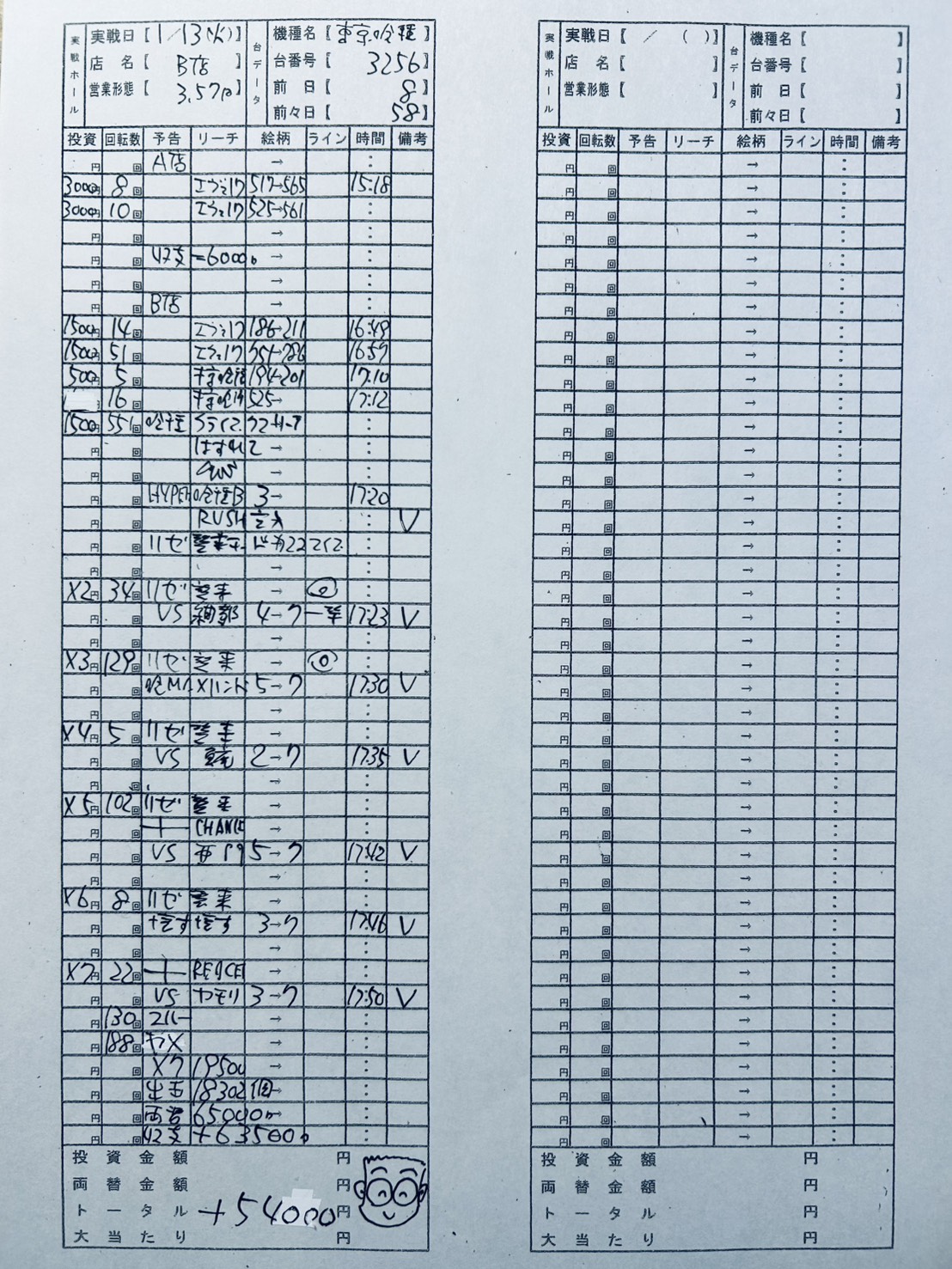 31台の中、1台目は5回大当り194回転の、朝から単発だらけのハマリ台でパッとしません。うしろで16回525回転の台がヤメたので即移動です。