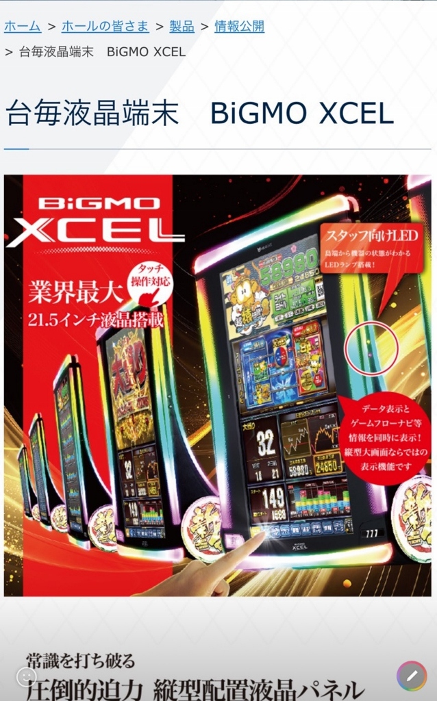 このあと登場しそうな牙狼13は出玉表示の修正をして、はたしてホールのメインコーナーでこのデッカいデータランプ“BiGMO XCEL”の元に並んでくれるのでしょうか?