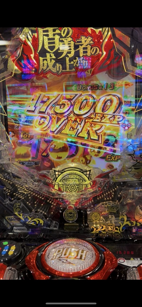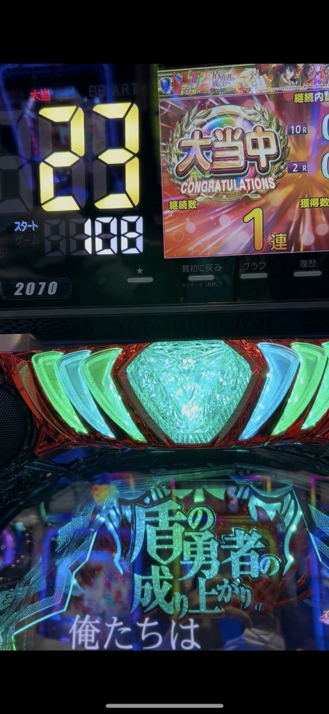 こっそり前から狙ってたけれど知る人ぞ知るSammyの“盾の勇者の成り上がり”の甘いことと言ったら、いま出てる199ver.の前の319分の1がおととしの12月に出て1年間バラエティコーナーに1台か2台しか入ってないのにいつも誰かが座って1~2万発は当たり前で、4万発くらいは1週間に1~2回出てて、“何だこの台は?”とずーっと気になっていました。盾の勇者の甘さです。