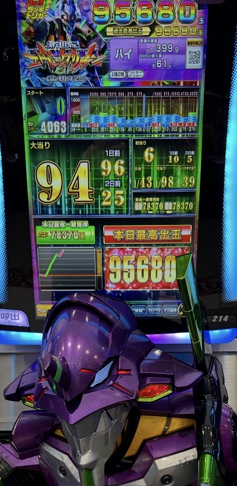 399分の1に懐疑的だった古いパチンコファンも、ラッキートリガーで万発を手にしてすっかり“エヴァはじのトリコ”です。