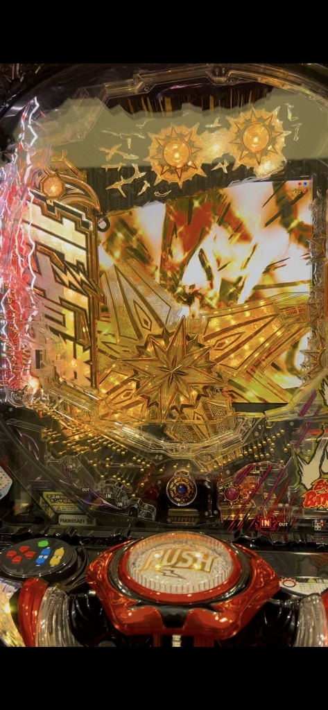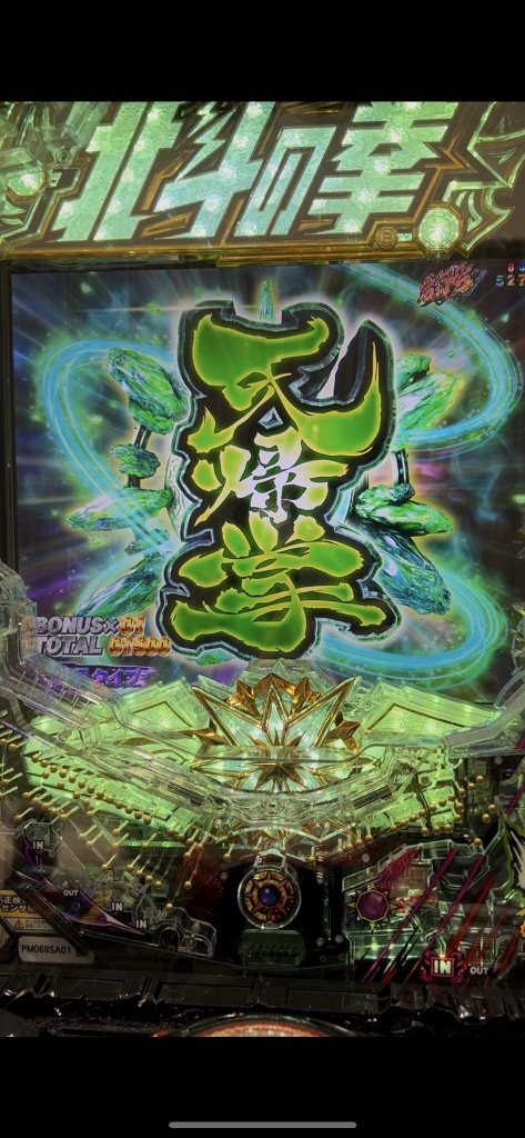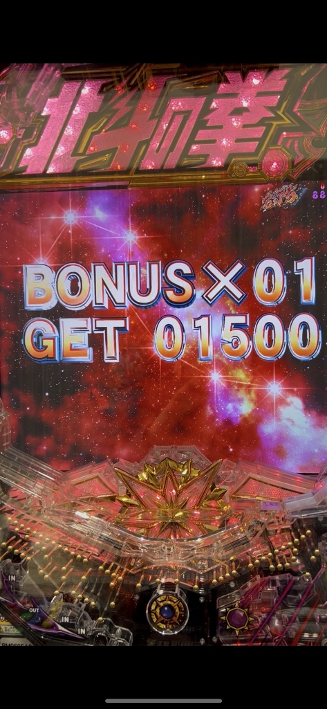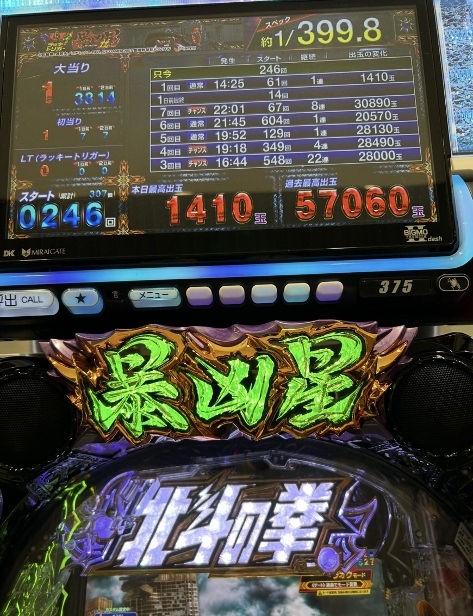 今日夕方、エヴァは30~40回一気出しの出涸らし台だらけで、北斗無双5の費用を吸われそうなので、暴凶星に移動です。