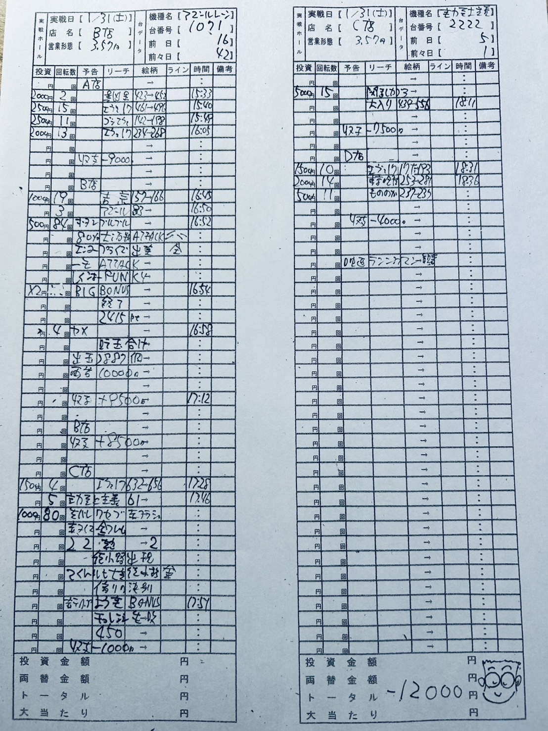 ▼1月31日実戦収支