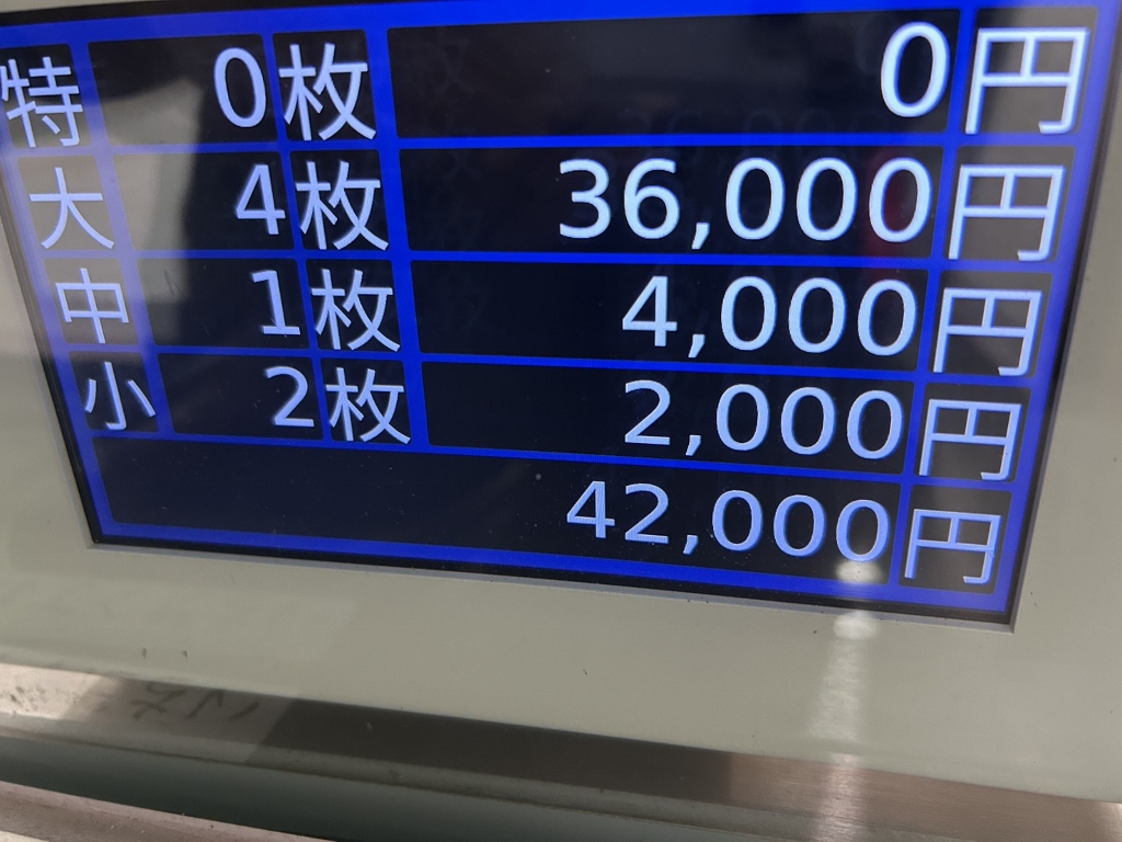 しっかりBistyデモ出しをして、食事の待ち合わせで来たカミさんを待たせて8時30分、1万2千発両替して4万2千円です。