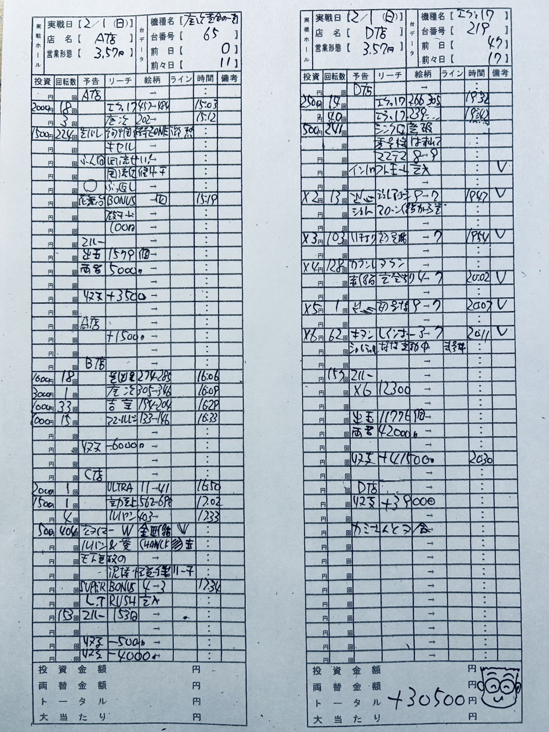 こんな感じで、表向きは199や179や111分の1でも、中身は400や500分の1の爆裂台がゴッソリ出てきます。