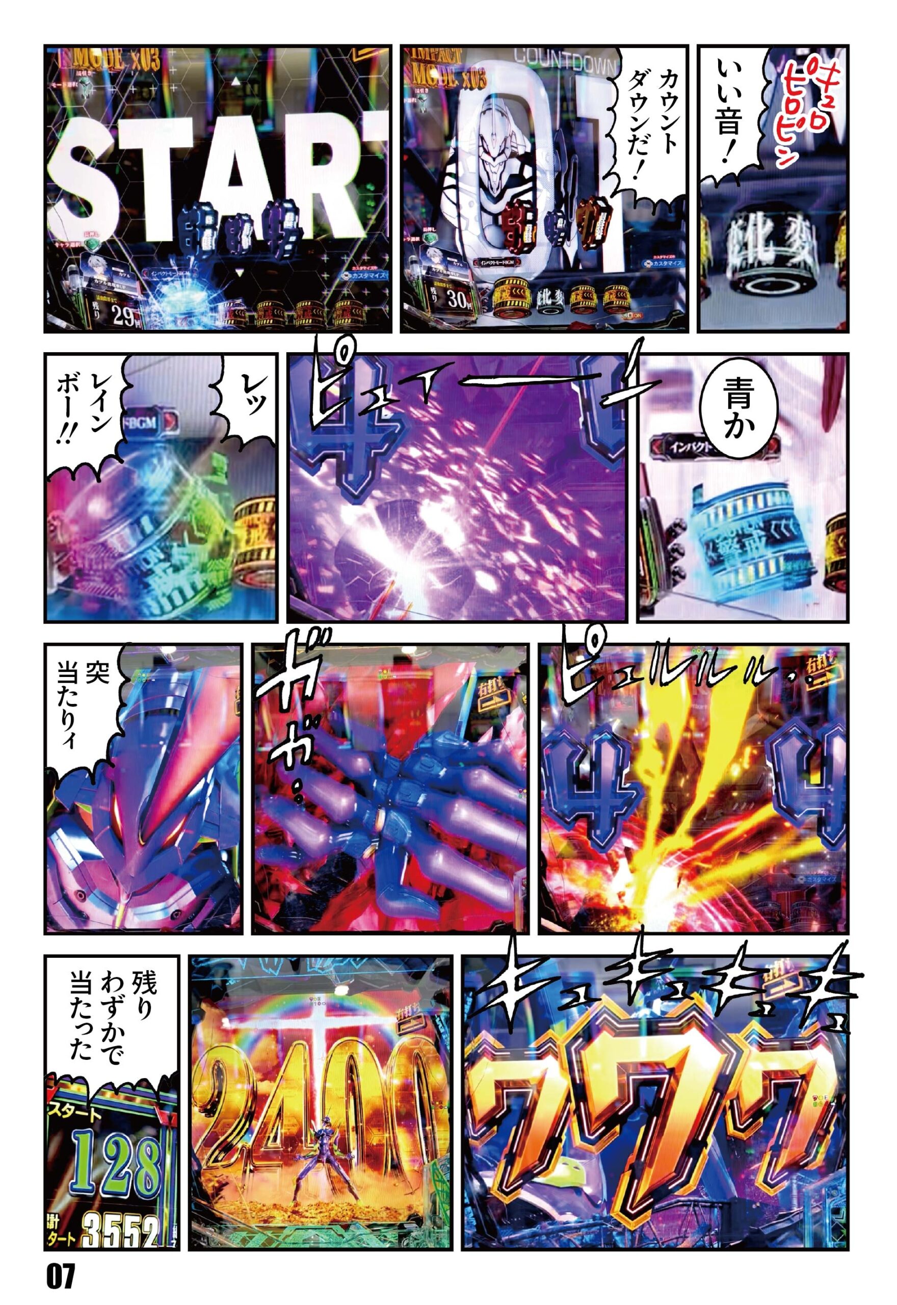今日のカラー漫画のポロリ2回転でエヴァはじで当ってるのを見ると、“マンガだから”で片付けられないリアリティが、ホールのそこかしこで目撃される時代になって、カニ歩くお客さんも増えました。