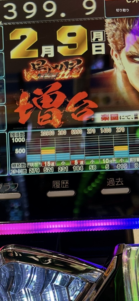 24回大当り279回転の台です。40の倍数狙いです。
