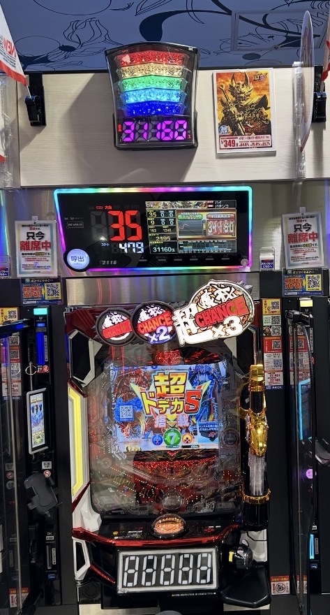 4~5万発レべルで一番出た新台はSammyの“e甲鉄城のカバネリ2 咲かせや燦然”と、京楽の“e魔法少女まどか☆マギカ3 時間遡行~始まりの願い”が客付きも夜遅くまで良くて、上出来のデビューです。