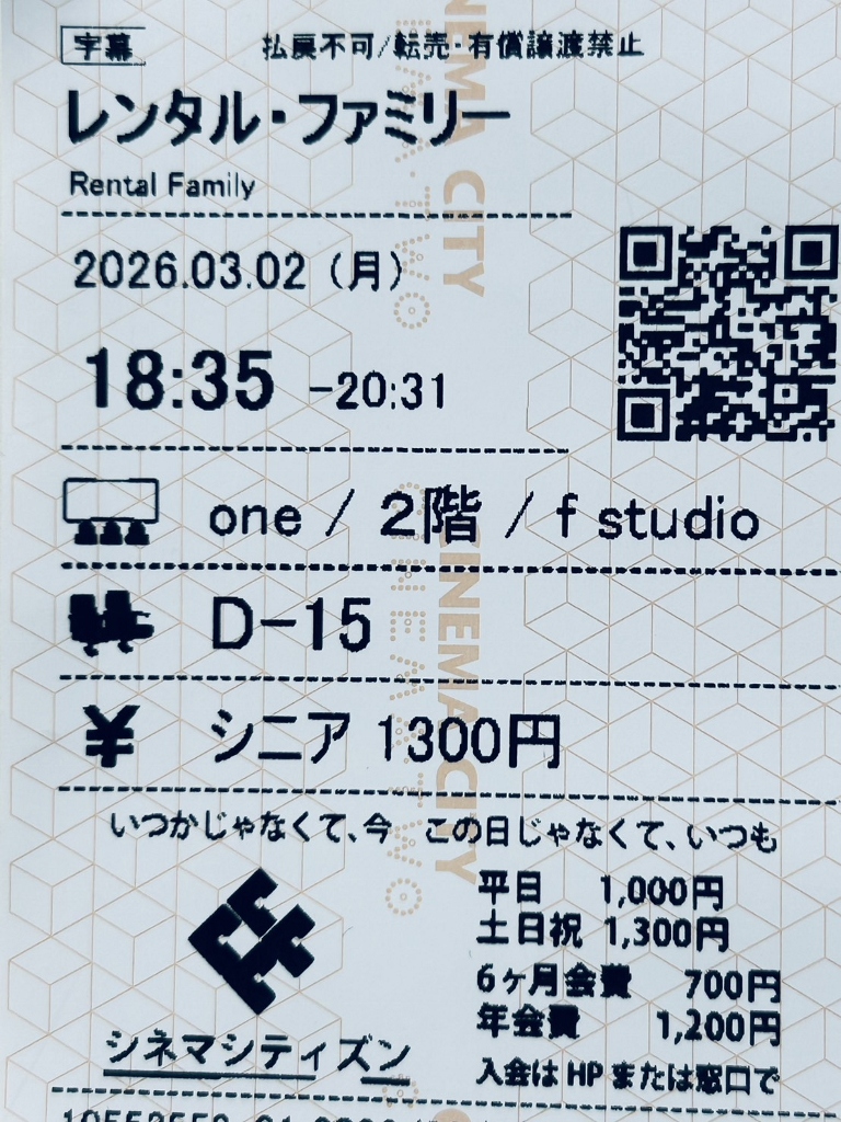 P.S. 今日はブレンダン・フレイザー主演の“レンタル・ファミリー”を観てホッコリしました。