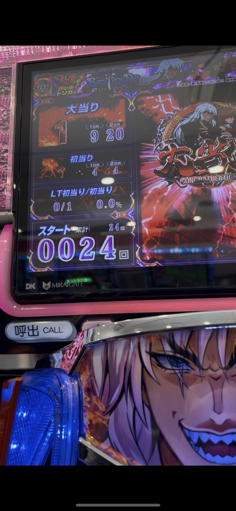 3回ストックに戸惑いながらも、牙狼のお面レインボーと音が一段とデカくなって嬉しそうです。
