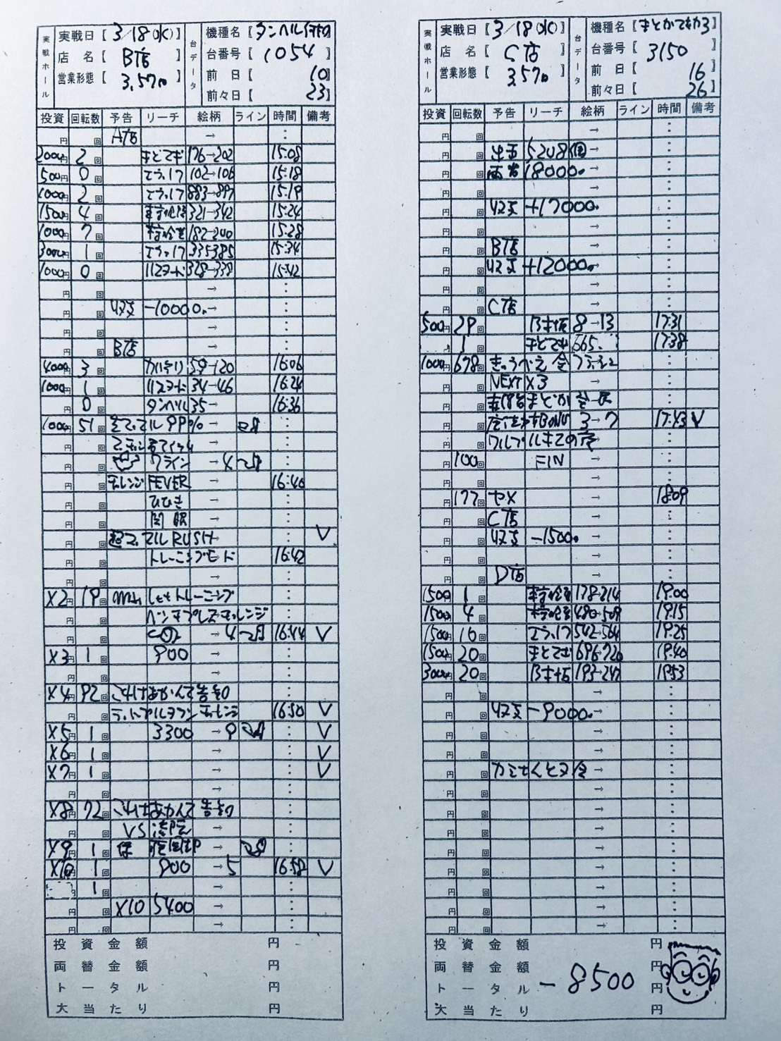 ▼3月18日実戦収支