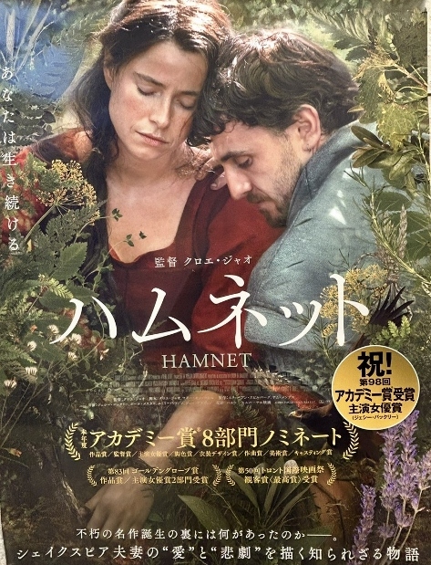 “ハムネットとハムレットは実際には同じ名前で、16~17世紀の記録文書ではどちらを使っても良かった”という文が映画の冒頭で流れる映画“ハムネット”を、昨日大勝ちしたので今日は映画を観るドンキホーテです。