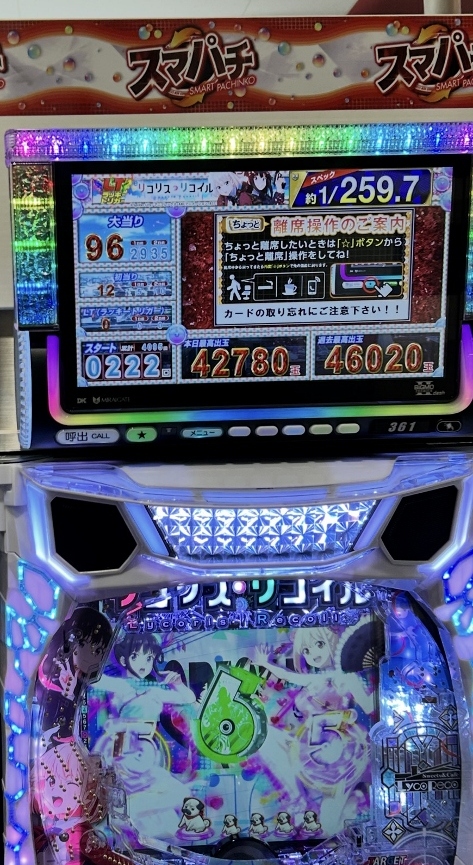 ホールに行っても平日リコリス・リコイルはどこのホールもフル稼働の満席で、とても座れない状況がまだ続いています。