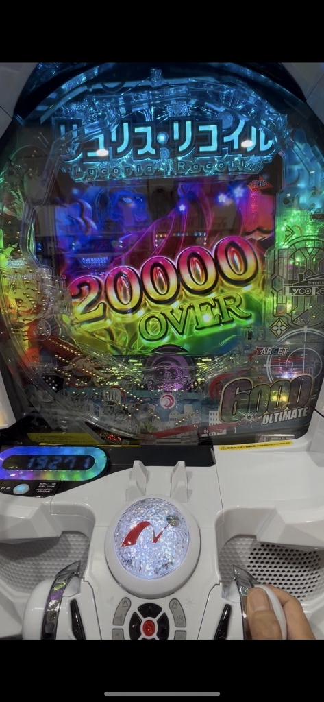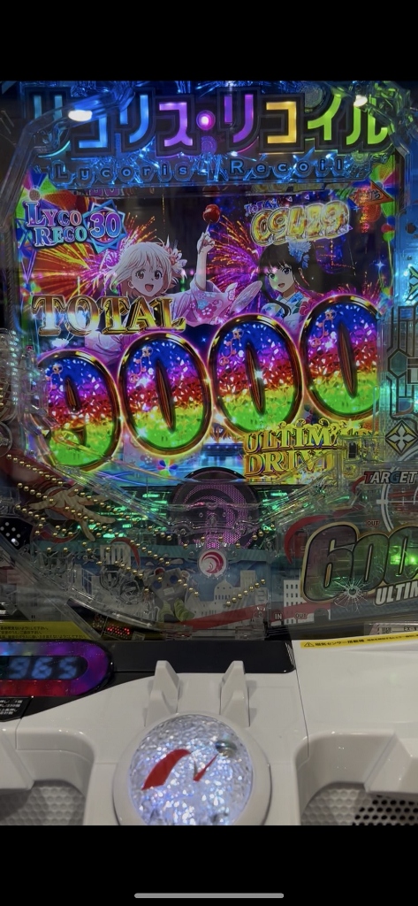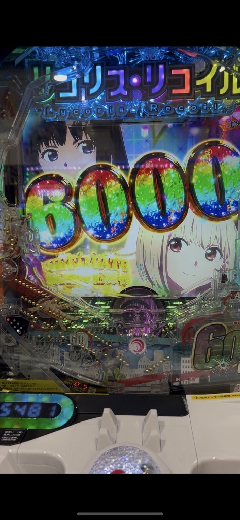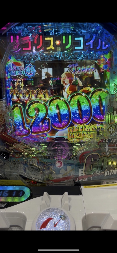 少なくても750発、ラッキートリガーのULTIMATE DRIVEで3000発6000発9000発12000発と増えていくリコリコに、改めて台についている説明書やスマホの台情報を慌ててチェックするお客さんの姿が目立つ新パラレルワールドのリコリコの大爆発です。