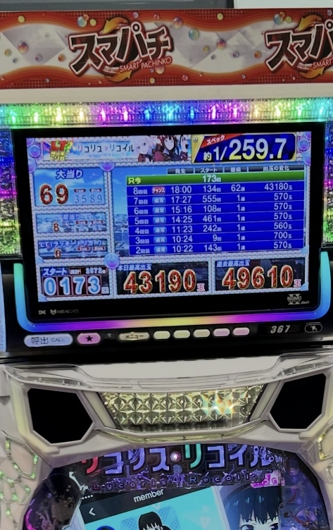 激推し!今夜もドル箱のニューギンのショールームでの強制ロムの実戦より、現実のリコリス・リコイルのほうがはるかに出ちゃってます。