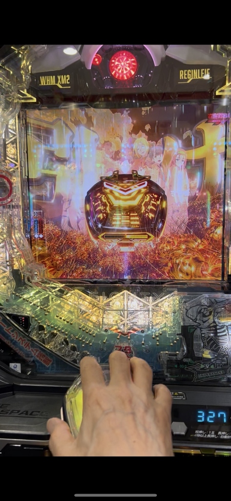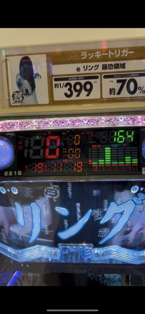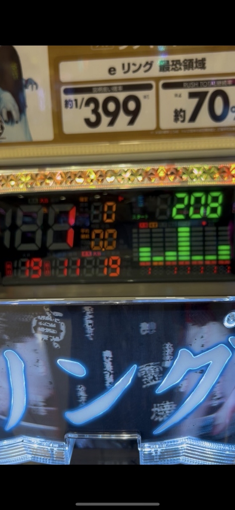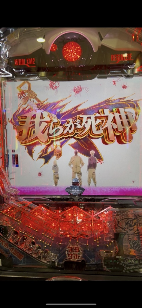 平和のゾロ目狙いで単発2回313回転の台に座って、ピキュンと鳴って“我らが死神”リーチでハズれます。