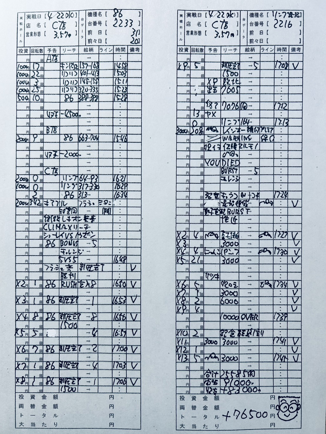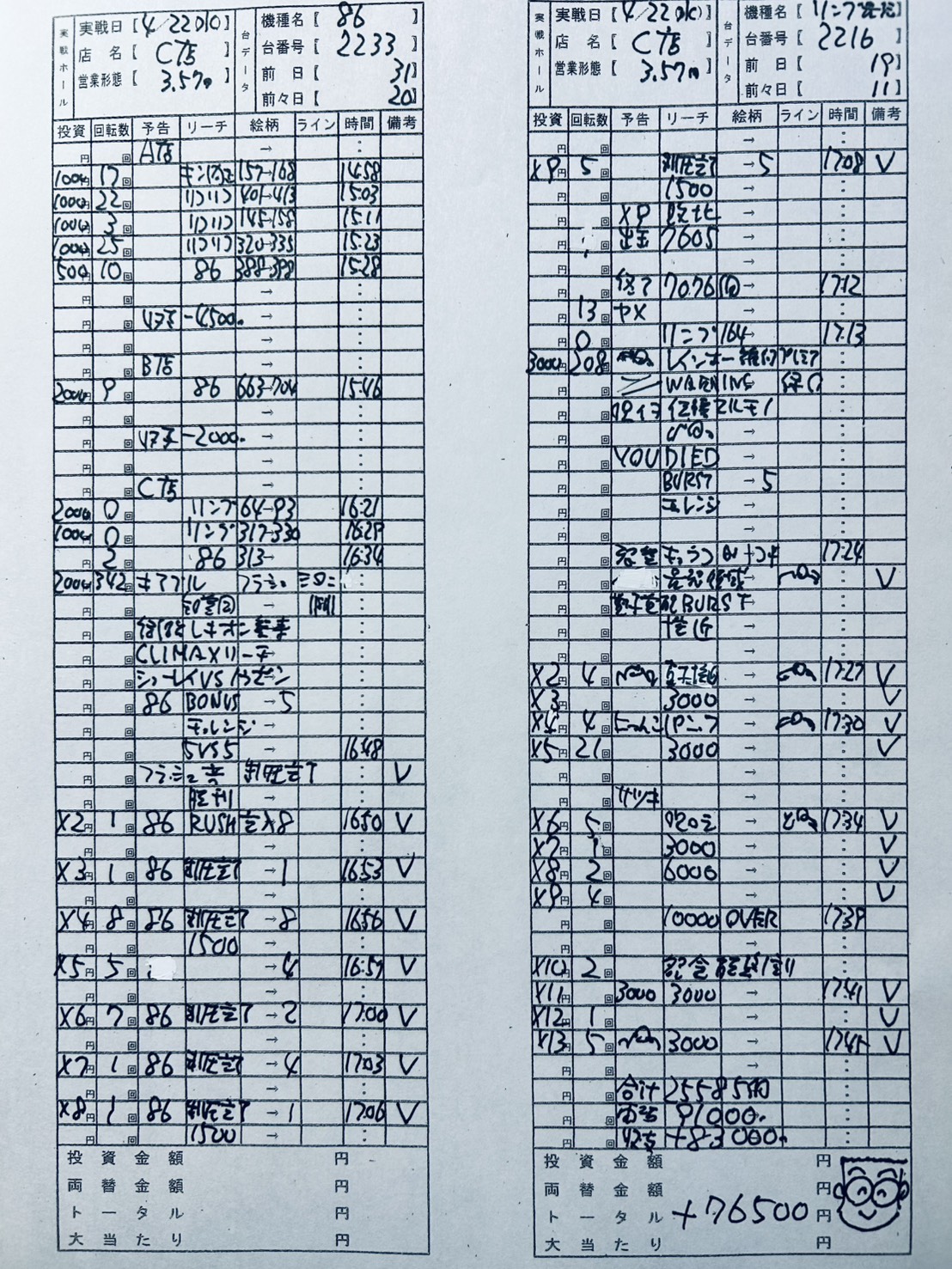 86とリングで今日は2万5千発、9万円も出ました。