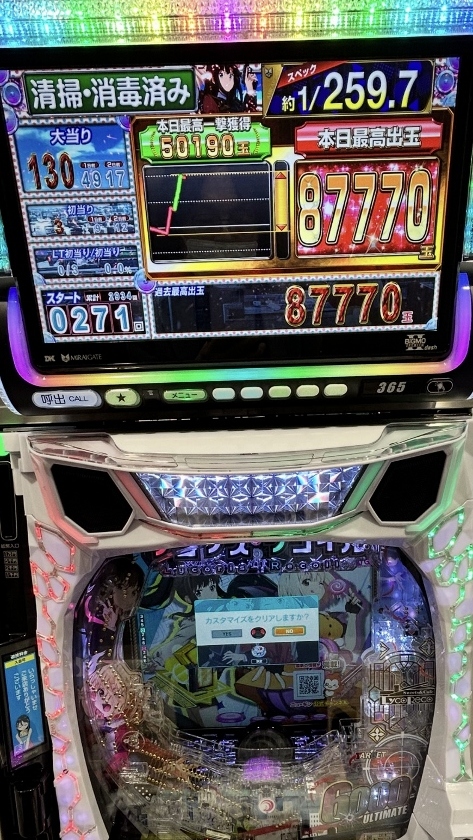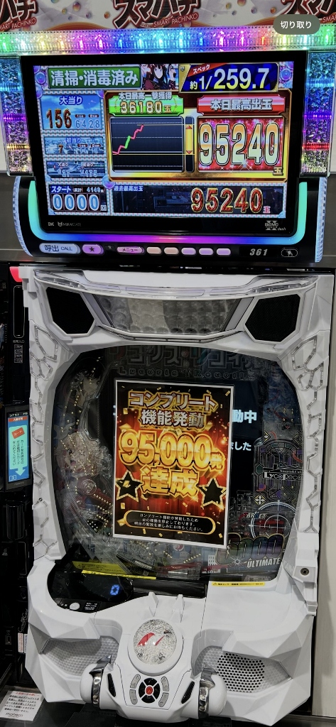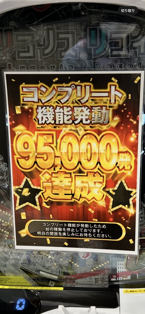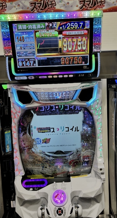いまや1~2万発は最低で、4~5万発は当たり前のリコリス・リコイルが25日土曜日にひとつのホールで2台も9万発OVERのコンプリートです。