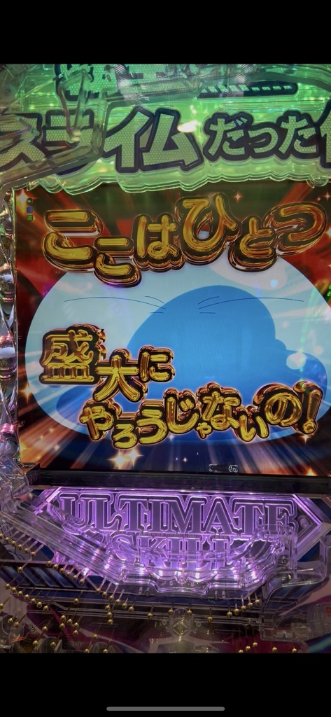 そんなリコリコに座れるわけもなく、4月の新台で唯一出せていなかったe転生したらスライムだった件2でオスイチ!ポロリ3回転で全回転大当りです。